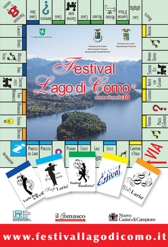 Per oltre un decennio abbiamo progettato e curato il catalogo annuale degli eventi estivi del Festival Lago di Como: non una semplice guida, ma un vero strumento editoriale di promozione turistica e culturale, capace di documentare e valorizzare l’offerta artistica dell’intera Provincia.